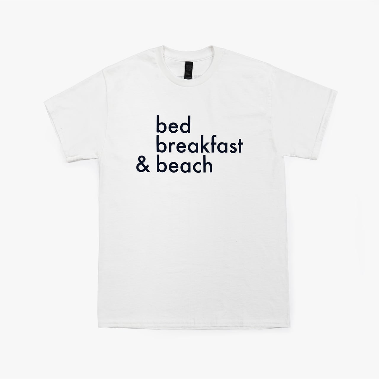bbb hausの3つの"b"が意味する、bed/breakfast/beachのタイポグラフィTシャツ。以前のものよりも少し厚めの6.1オンス、シルエットも少し大きめです。